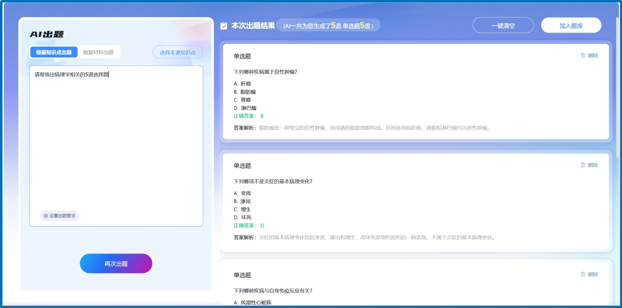 三、AI出題——智能生成課程題庫,滿足各類考試需求