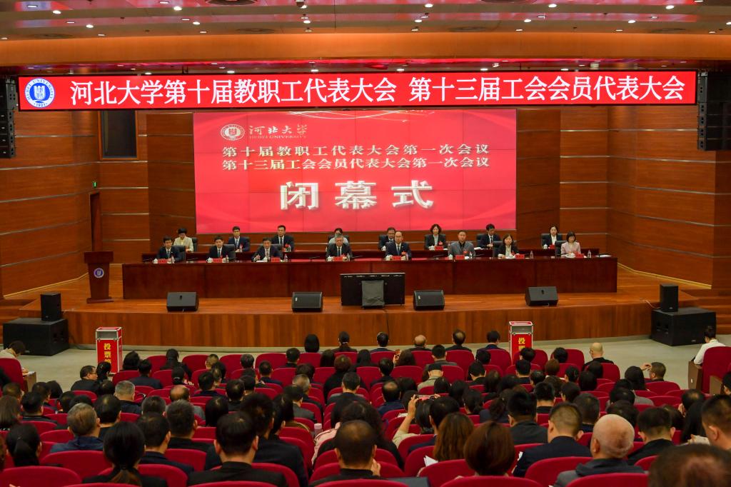 在高亢嘹亮的校歌聲中,河北大學第十屆教職工代表大會、第十三屆工會會員代表大會第一次會議圓滿完成了各項議程,大會勝利閉幕。